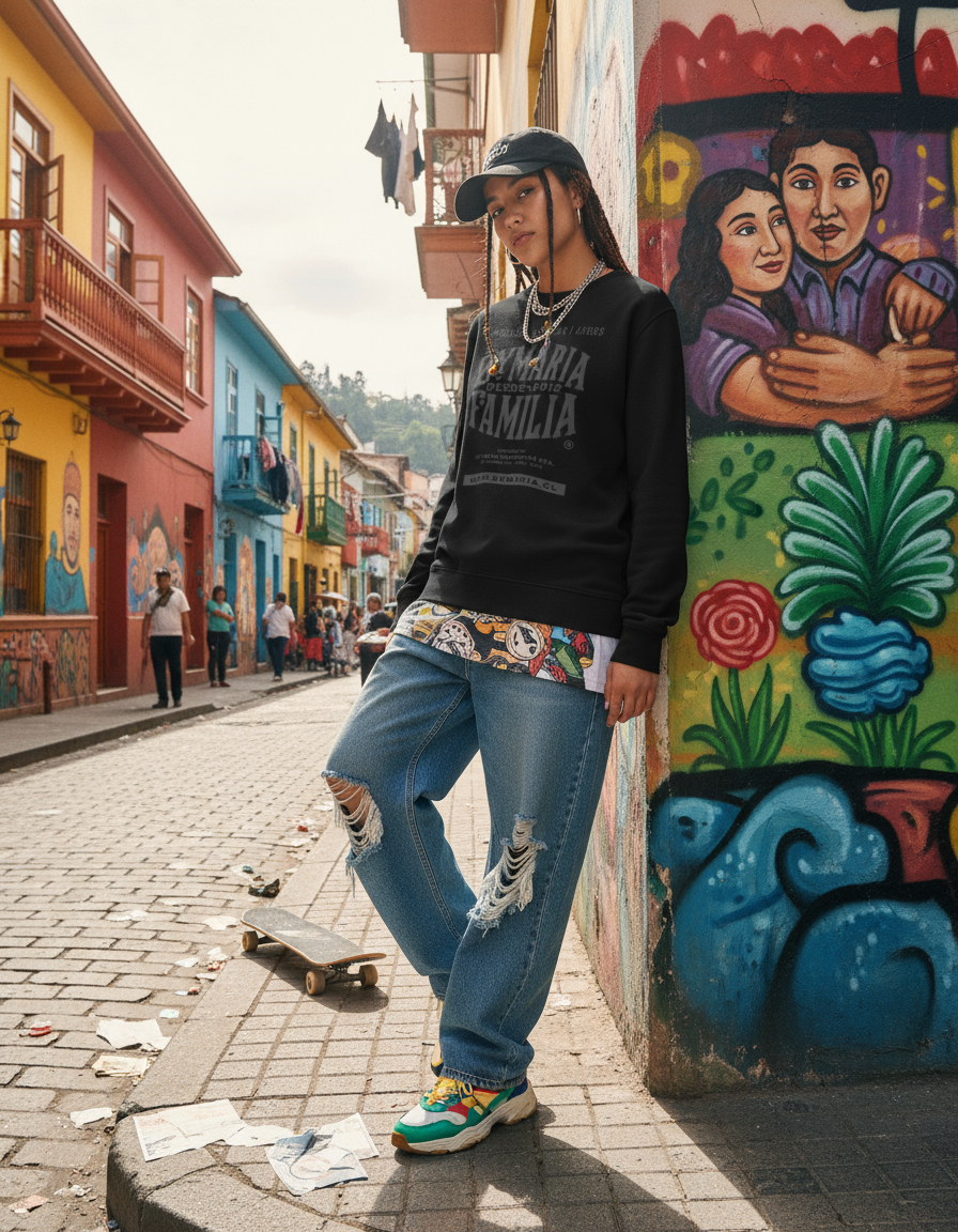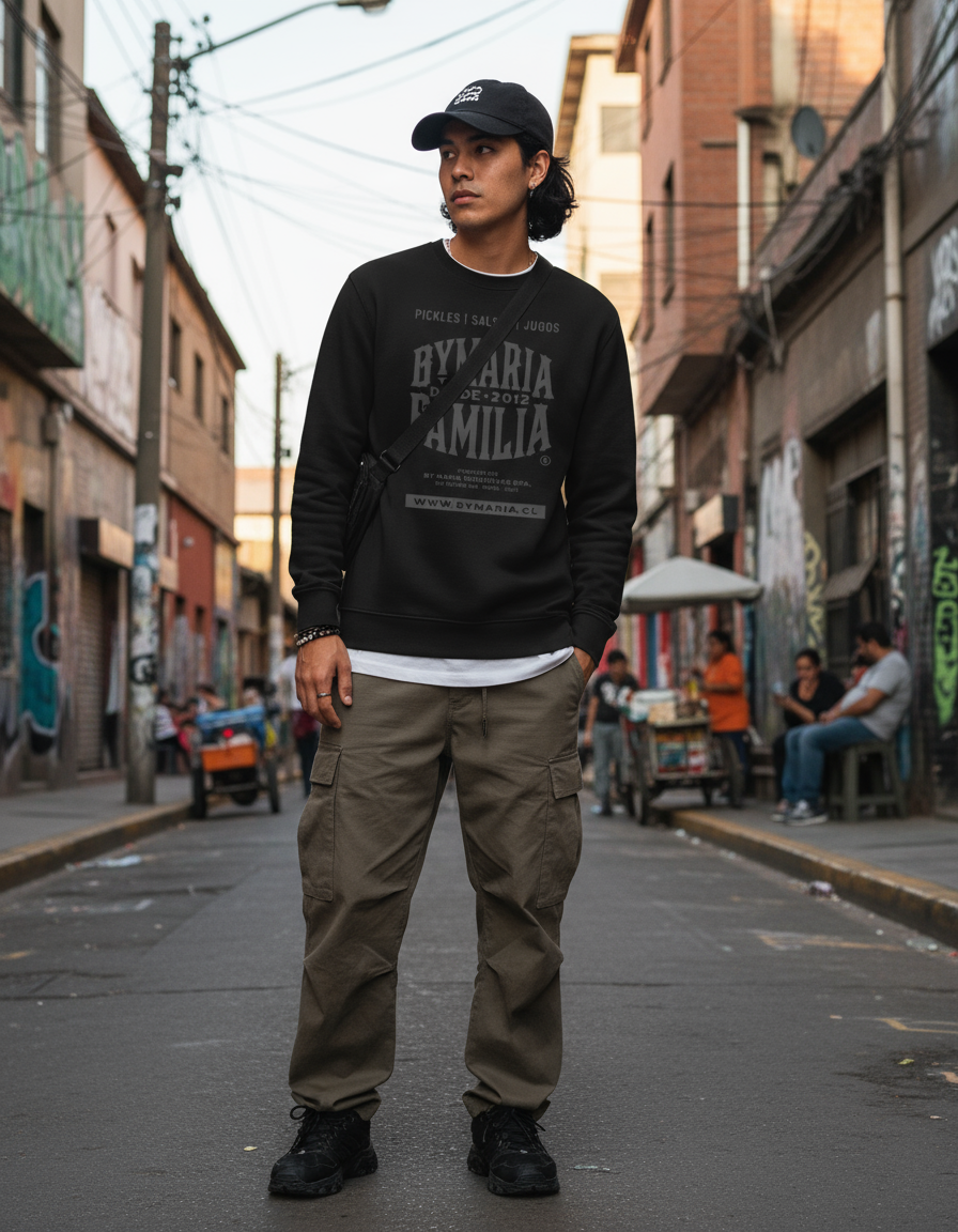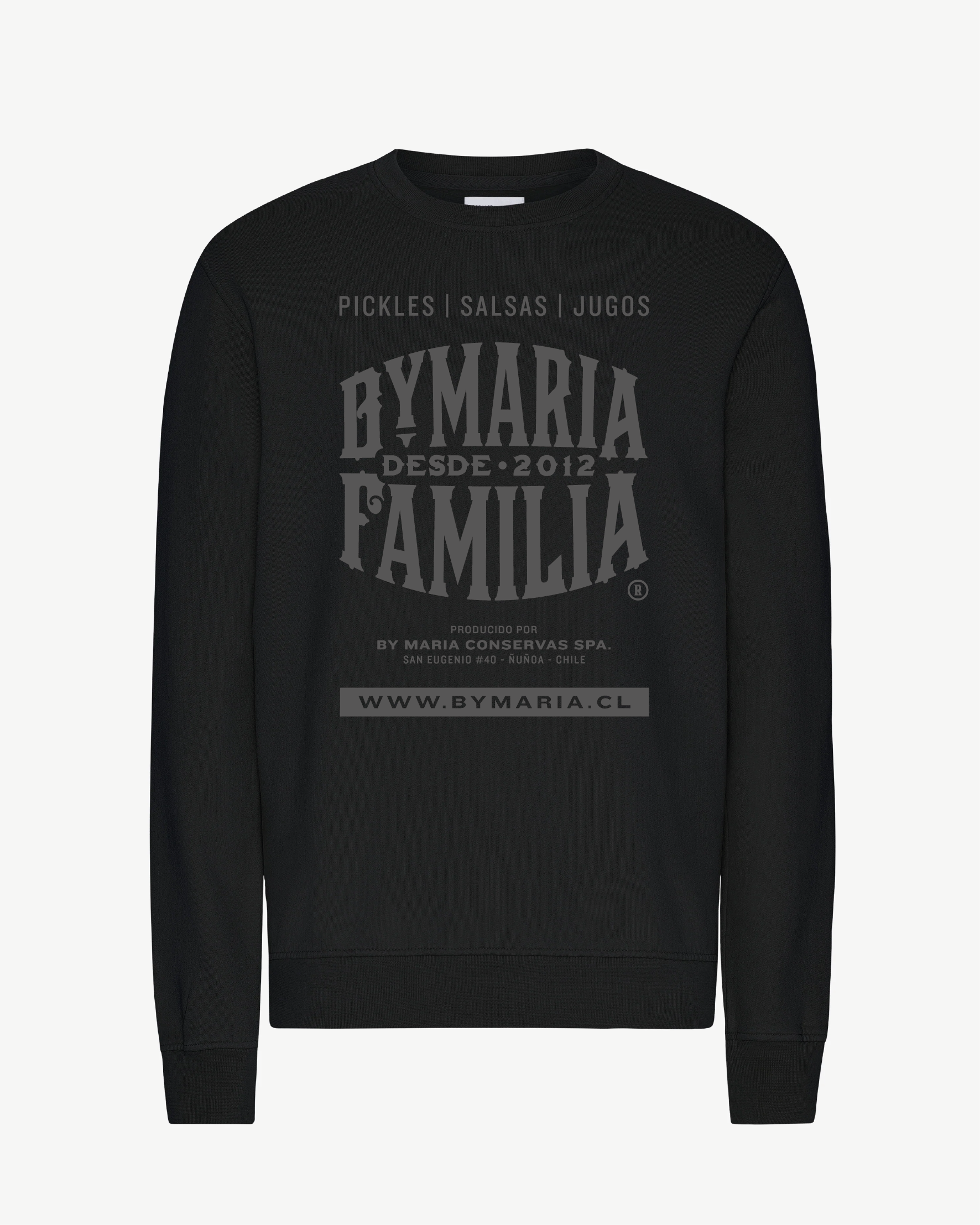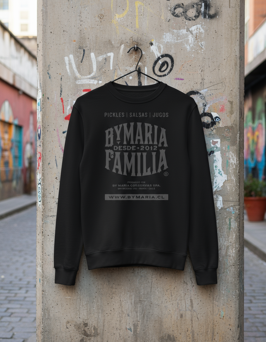 Polerón en negro con serigrafía en gris oscuro. La combinación de estos tonos genera un equilibrio visual que mantiene la esencia del diseño. Una prenda fundamental para los días frescos.